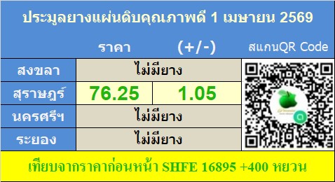 ตลาดกลางประมูลยางสุราษฯ76.25 บาท/กก.  ราคาเพิ่มขึ้น   https://www.rakayang.net/vip/view.php?idr=31508