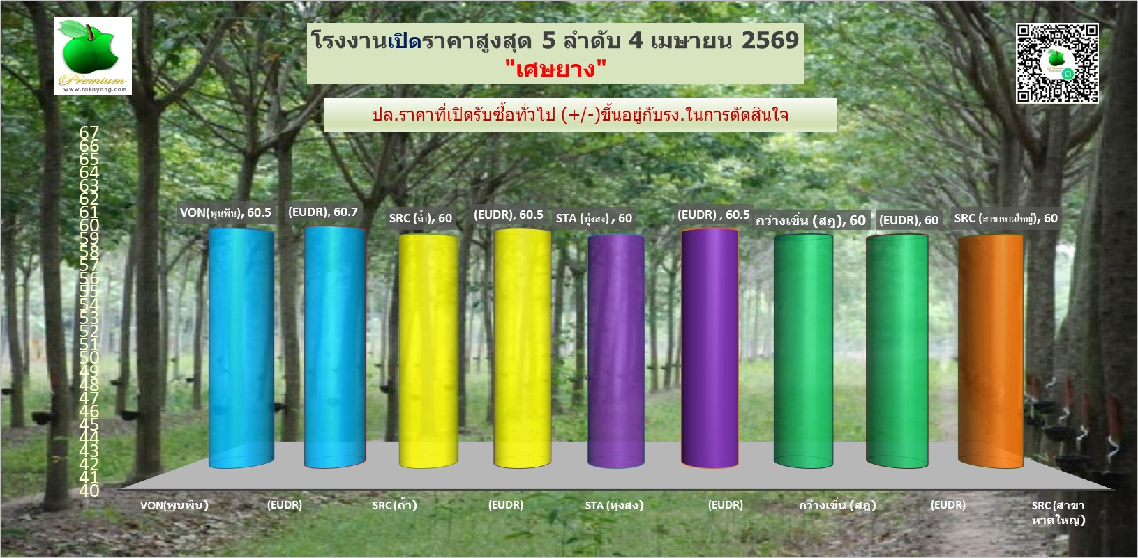 สรุปราคายางแผ่นรม/ดิบ เศษยาง เครฟ โรงงานทั่วไปประจำวัน เสาร์ ที่ 4 เมษายน 2569