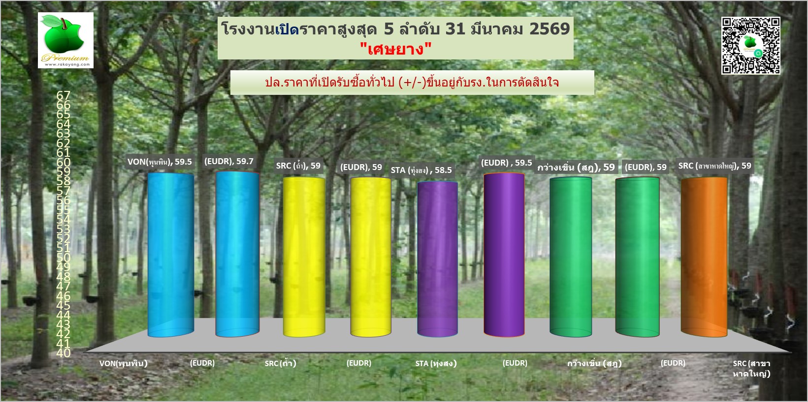 สรุปราคายางแผ่นรม/ดิบ เศษยาง เครฟ โรงงานทั่วไปประจำวัน อังคาร ที่ 31 มีนาคม 2569
