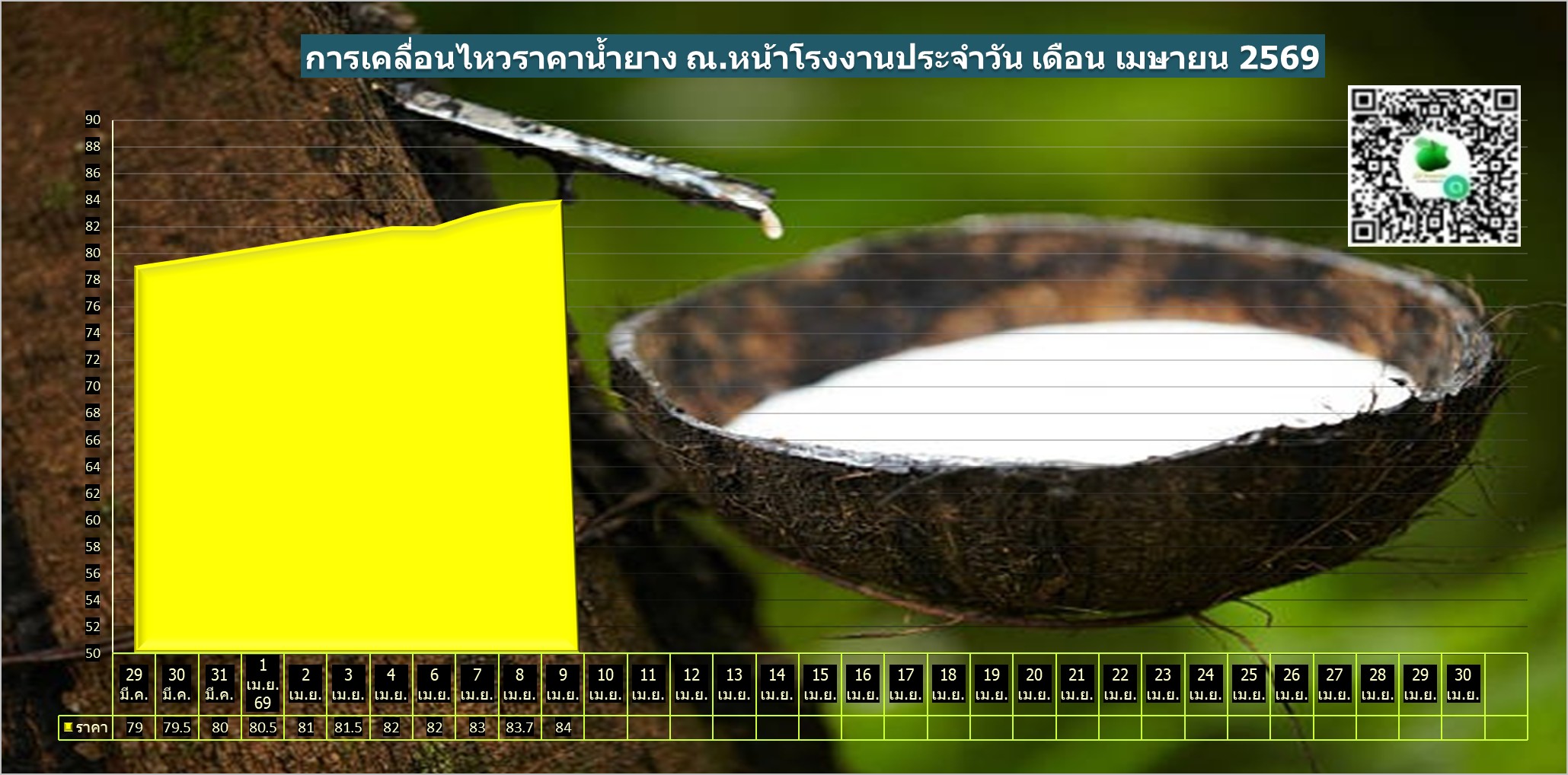 สรุปราคาน้ำยางโรงงานและลานท้องถิ่นทั่วไปประจำวัน พฤหัสฯ ที่ 9  เมษายน  2569